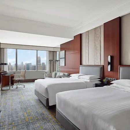 Hotel Shanghai Marriott Marquis City Centre posiada 978 pokojów, niektóre z nich obejmują jadalnię i miejsce do siedzenia, a także mają takie opcje wyżywienia jak minibar i urządzenie do parzenia kawy/herbaty. Pokoje wyposażono w suszarkę do włosów i ręczniki. Niektóre z tych pokojów mają widok na ulicę.